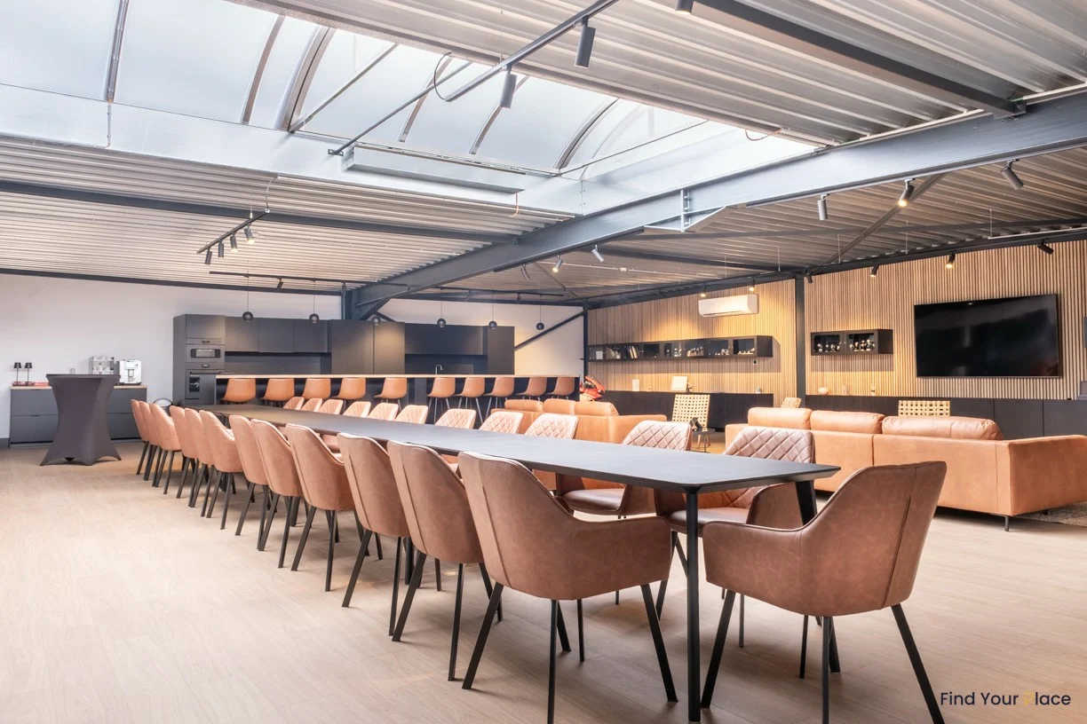 Inspiration industrielle et ambiance cosy réunies dans un espace polyvalent pour vos événements professionnels.